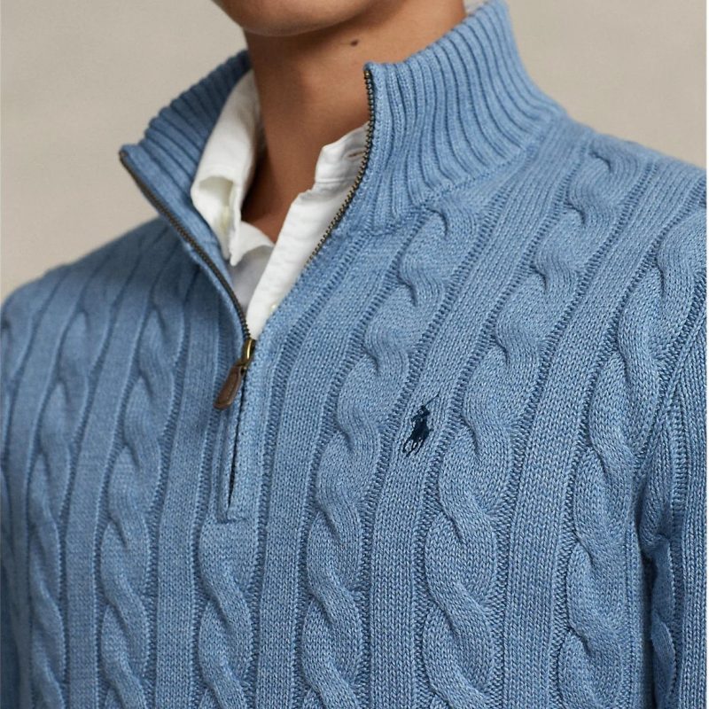 Polo Ralph Lauren Cable-Knit Cotton Quarter-Zip Sweater – Sky Blue
