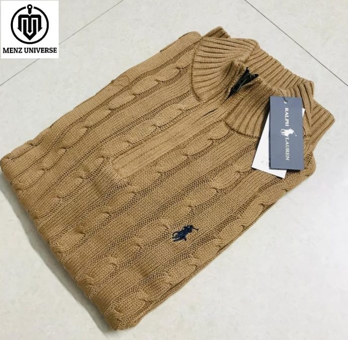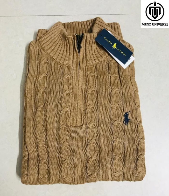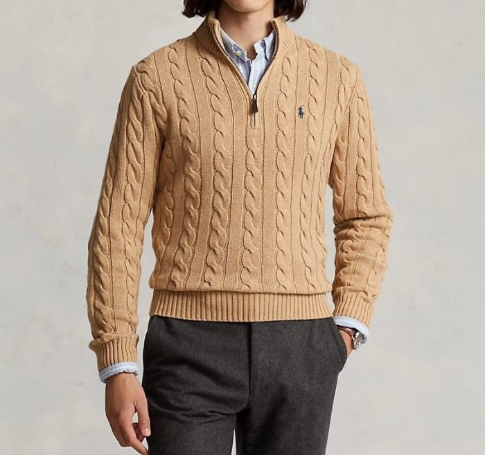 Polo Ralph Lauren Cable-Knit Cotton Quarter-Zip Sweater – Beige
