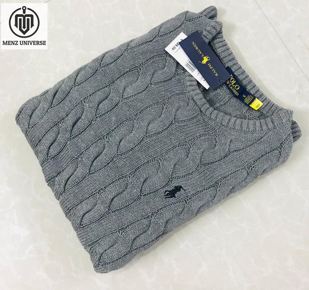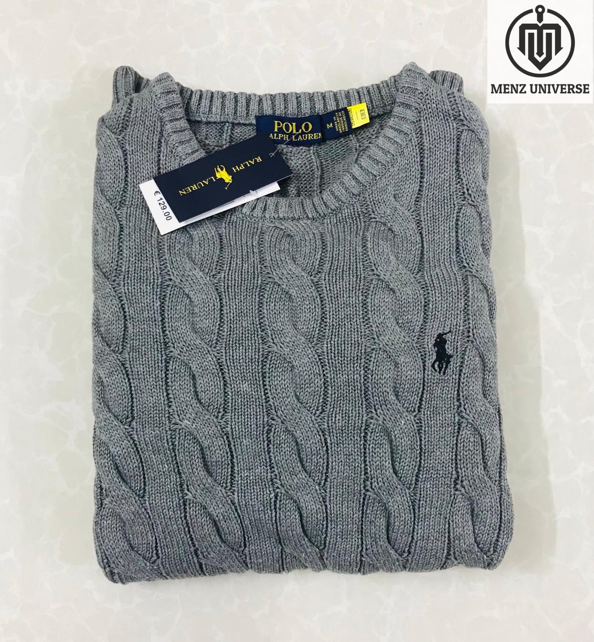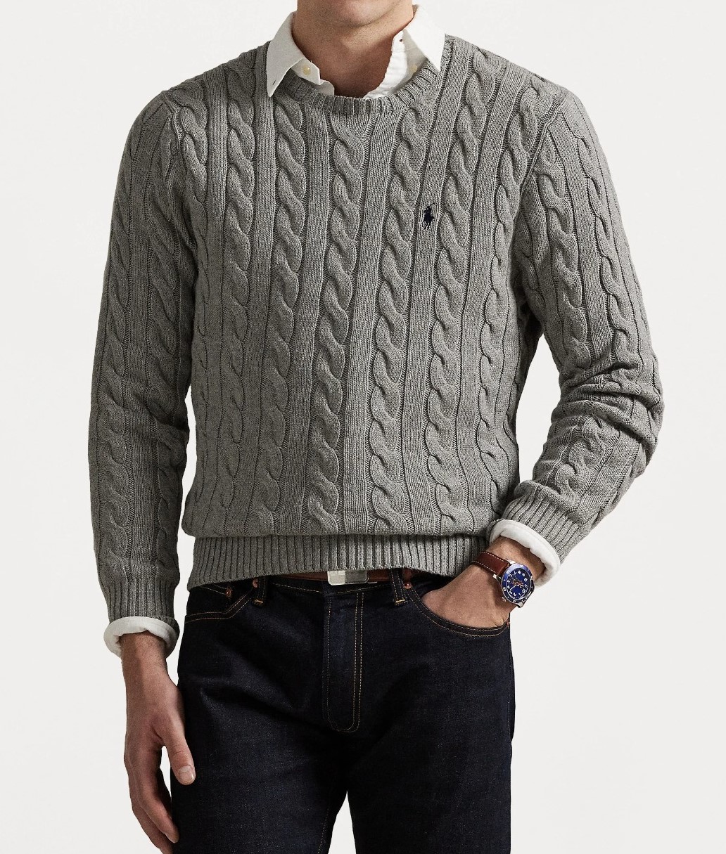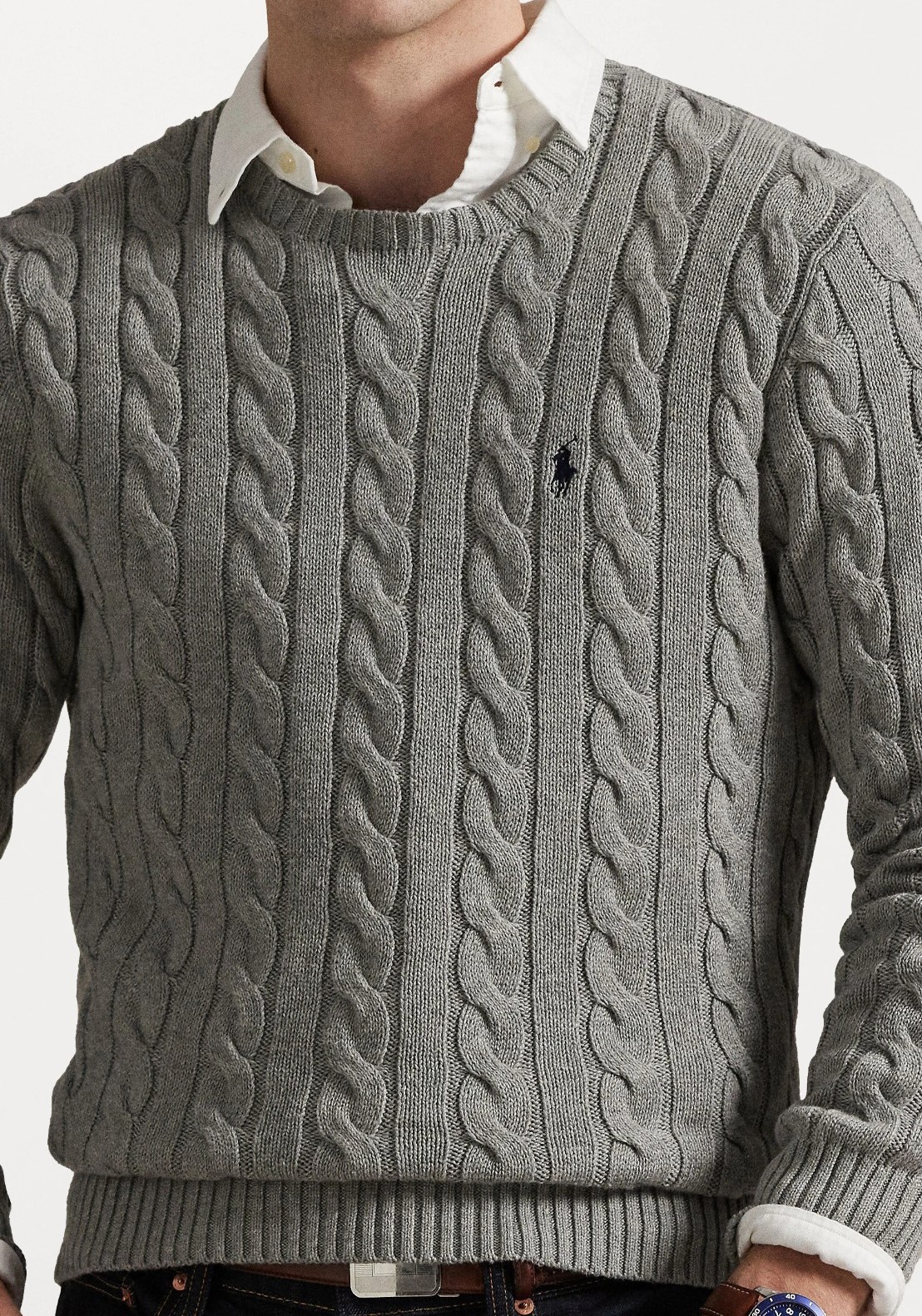 Polo Ralph Lauren Cable-Knit Cotton Round Neck Sweater – Grey