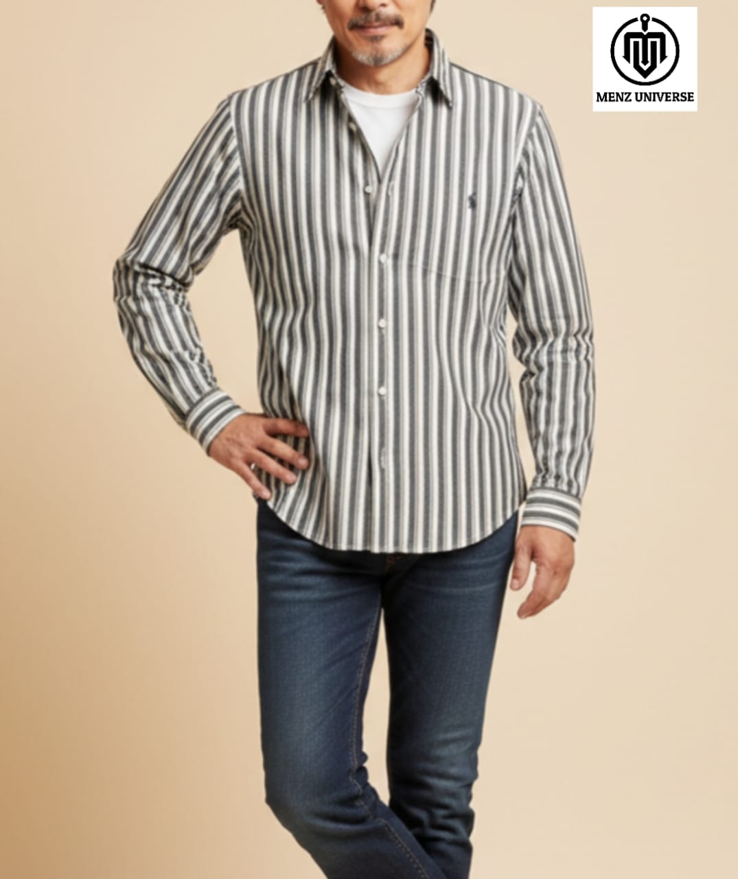 - Collar Style: Ash Grey Striped